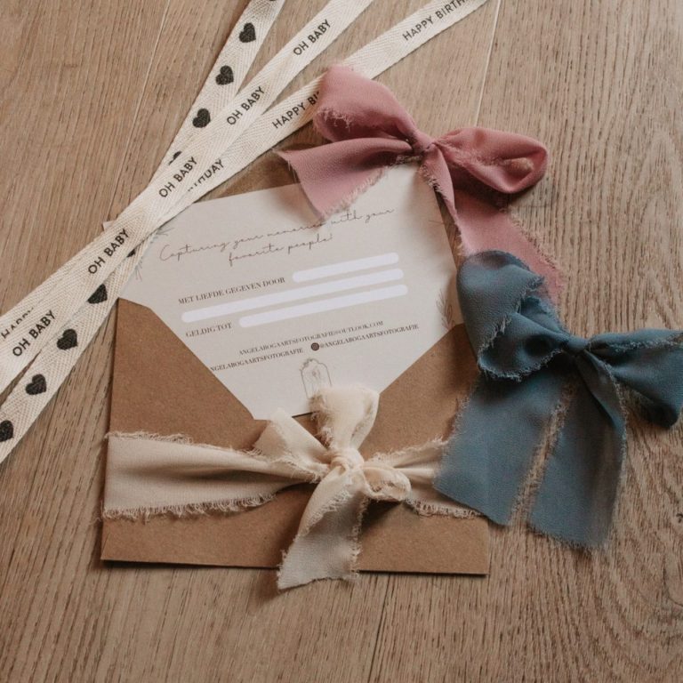 Een cadeaubon is in ieder gewenst bedrag te bestellen. Je kunt er dus voor kiezen om een bijdrage te doen aan een shoot of om een complete shoot cadeau te geven! Ik pak hem mooi in, passend bij de feestelijke gelegenheid!