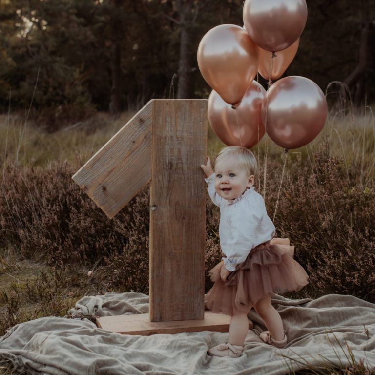 De eerste verjaardag is een bijzonder mijlpaal en verdient het om op mooie manier vastgelegd te worden. Tijdens een first birthday shoot vieren we dit moment samen! Ik plan deze shoot altijd een week of 5/6 voor de verjaardag, zodat je de foto's zeker op tijd hebt en ze eventueel kunt gebruiken voor een uitnodiging! De shoot vindt plaats buiten in de natuur en wordt aangekleed met een grote houten 1, ballonnen en eventueel bellenblaas voor een fijne, feestelijke sfeer. Naast foto’s van jullie jarige, is er ook volop aandacht voor beelden samen met het gezin. We nemen hier ongeveer 1 tot 1,5 uur de tijd voor, zodat alles ontspannen verloopt en er een heerlijke herinnering ontstaat aan dit bijzondere eerste jaar.